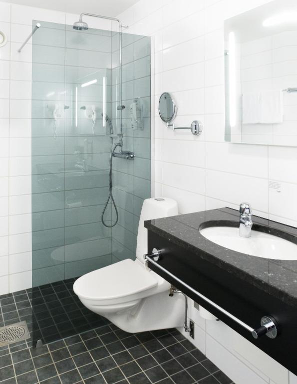 Hotellet har en mycket bra frukostbuffé, mysig bar och tillgång till gym och pool.