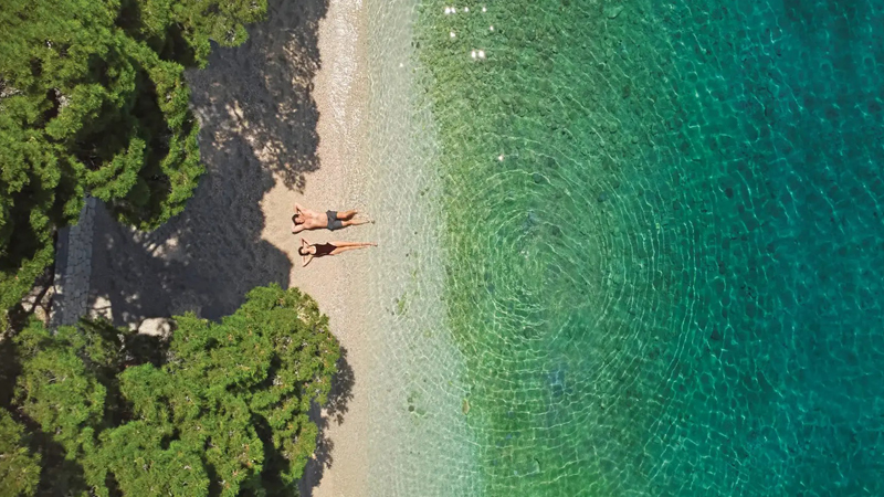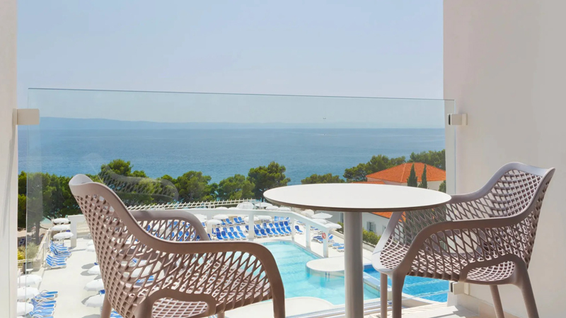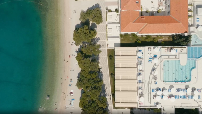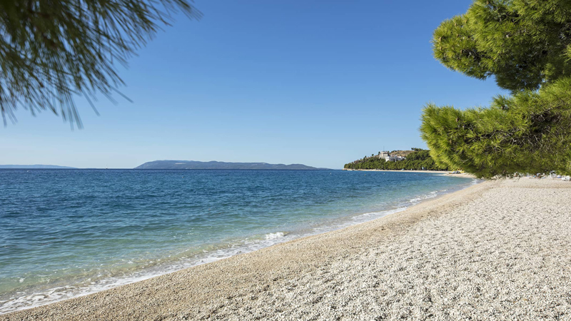 Kombinera avkoppling vid poolen med trevliga strandpromenader - Bluesun Hotel Alga ligger alldeles intill den längsta stranden på Makarska Rivieran där alla kan hitta sin plats under solen eller i skuggan av medelhavets tallar. Vid hotellets rymliga poolområde finns parasoller och solstolar som är gratis för alla hotellgäster.