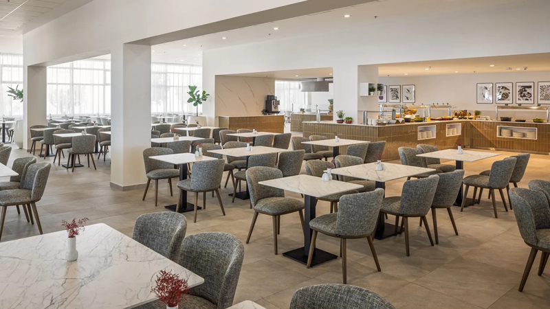 Anläggningen är terrasserad upp mot bergen omgiven av frodig grönska och med utsikt över havet. Här finns sällskapsytor för gemenskap, inbjudande serveringar och aktivitetsområden för den som vill hålla sig sysselsatt. Längs strandpromenaden finns ett stort utbud av restauranger, glassbarer och småbutiker värda ett besök.